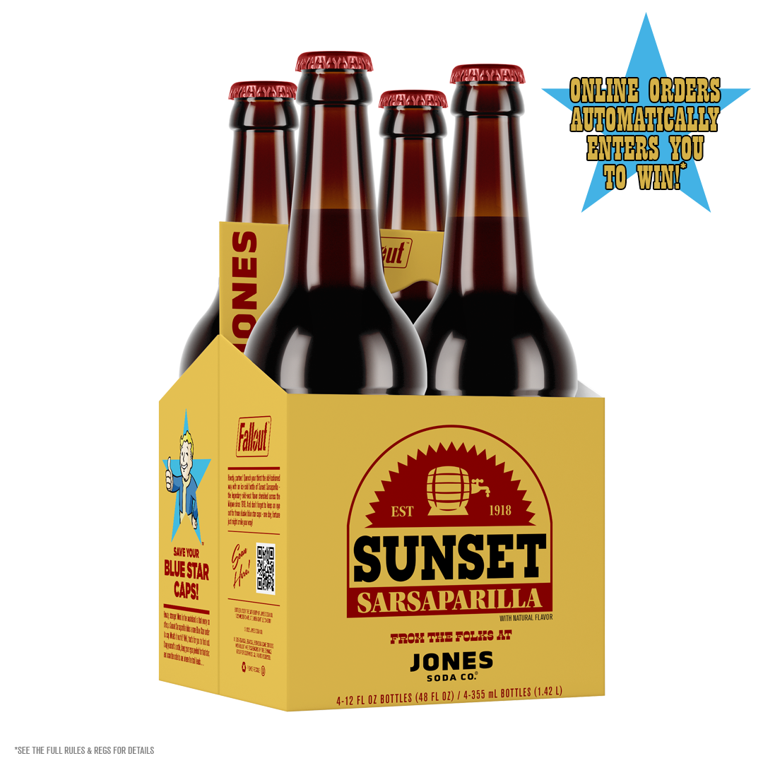 “Howdy, partner!” - that’s something Mr. Festus, featured on this page, might say if you found yourself wandering through Fallout: New Vegas. He’d probably even tell you a tale or two about the Legend of the Star. But here we are, in 2025 not 2281, and instead of Festus handing you a Sunset Sarsaparilla, it’s us here at Jones Soda.
